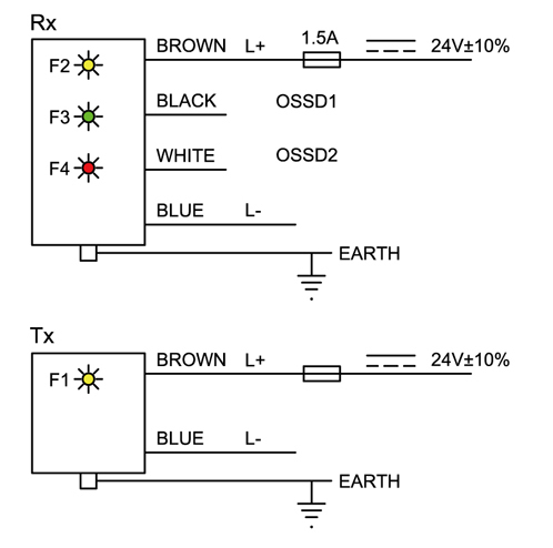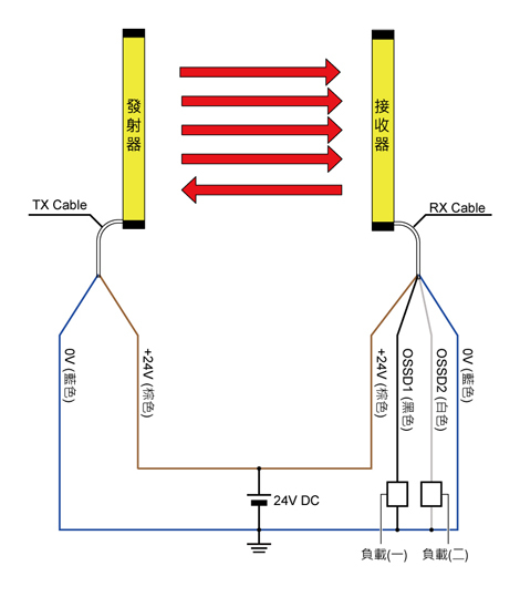 消耗功率 | 發射端 200mA + 接收端 200mA + OSSD Output ( 500mA max. ) | |