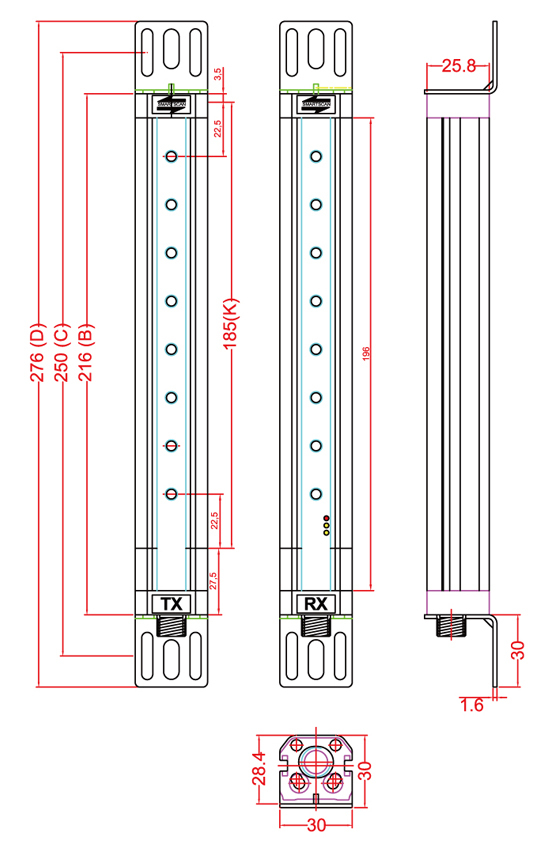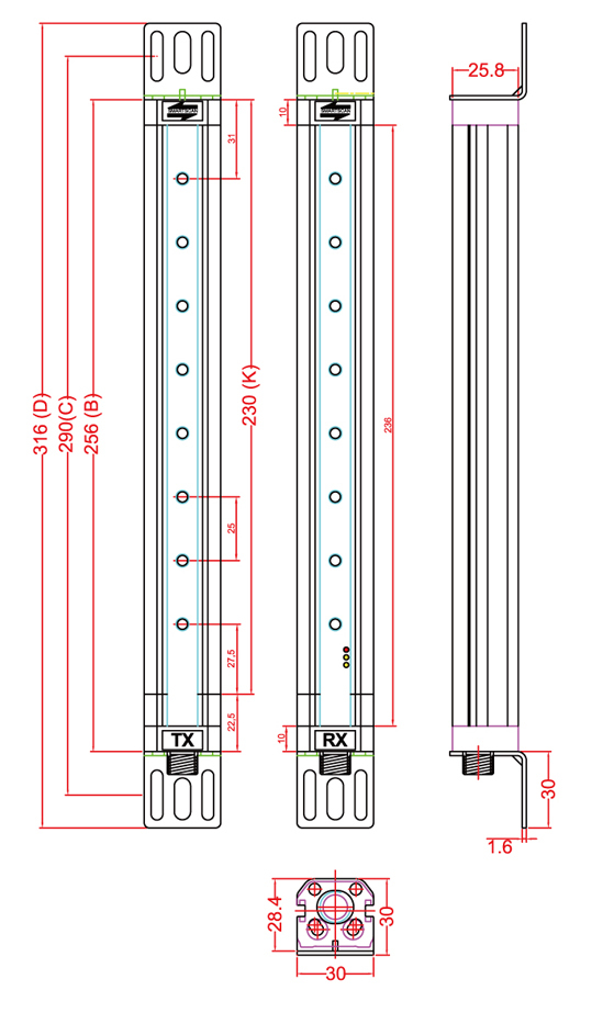 The use of non-synchronous wire wiring eliminates extra wiring, and the special optoelectronic communication method can avoid the optical crosstalk problem of the general photoelectric sensor, and achieve the stability of the photoelectric switch with line synchronous communication.