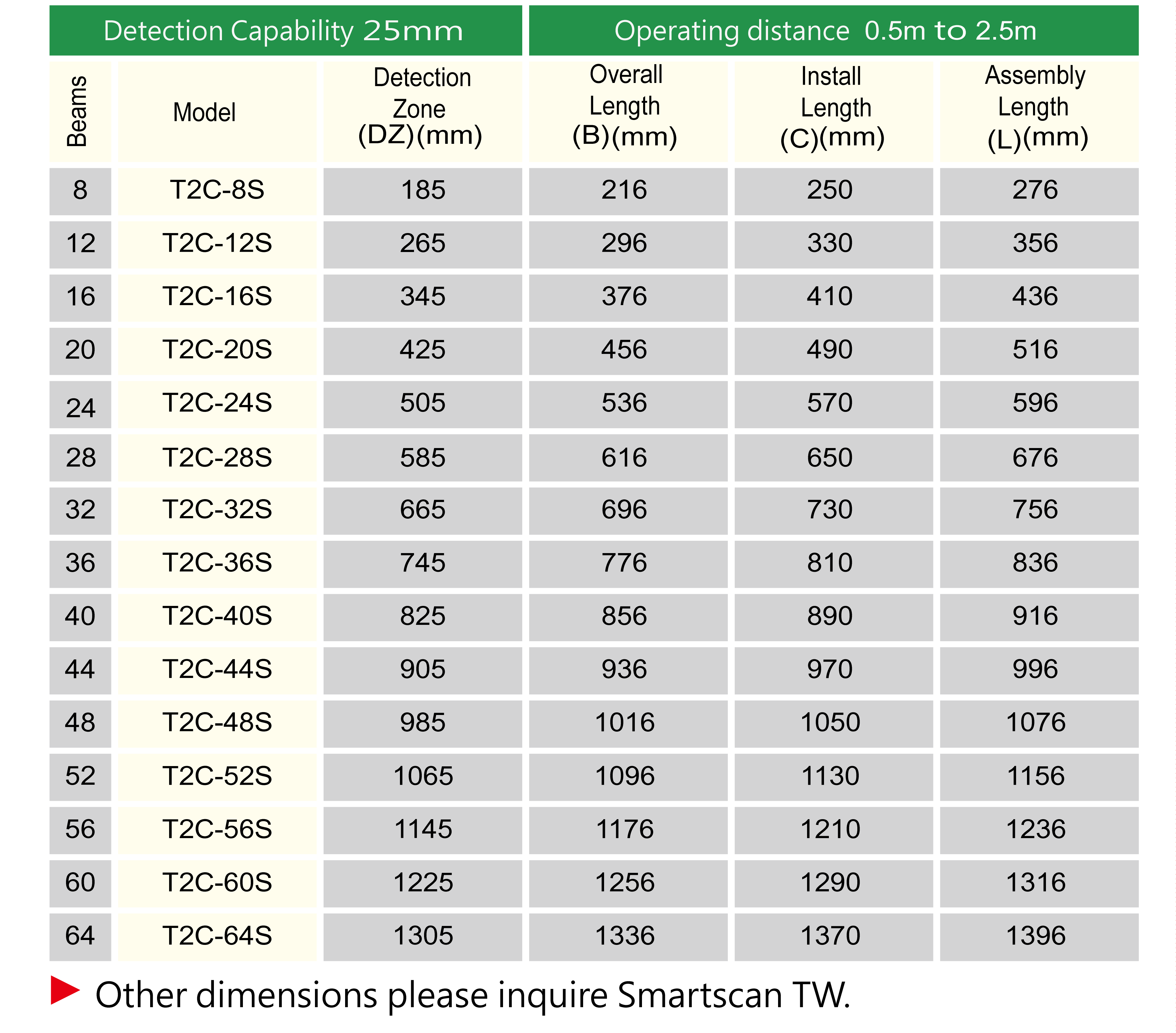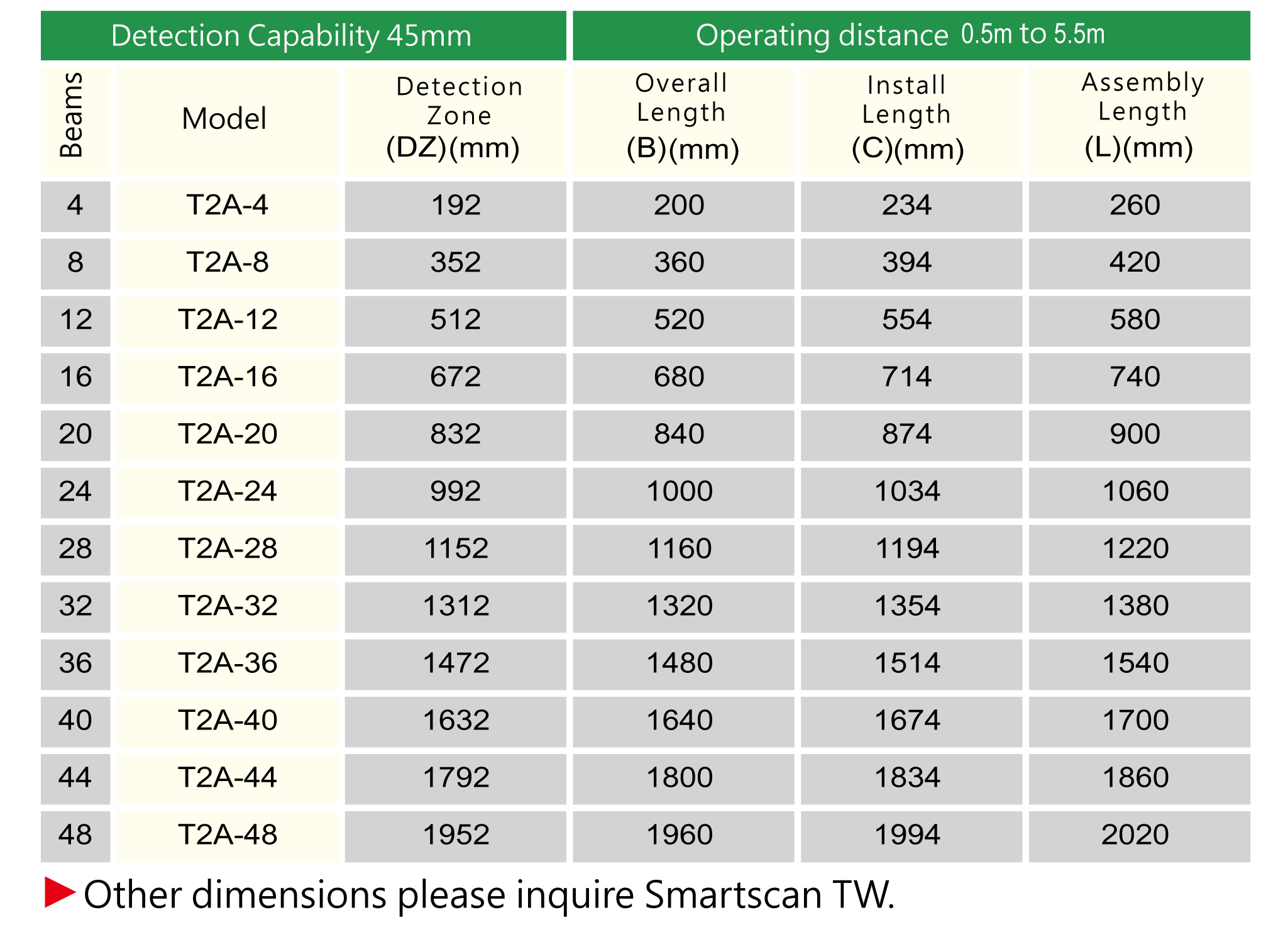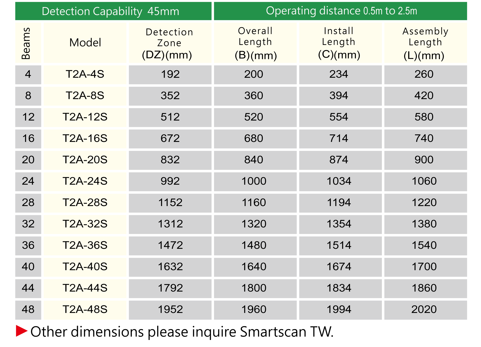 The T2 series safety light curtain optical design architecture is compact and in line with international safety standards.The light curtain as a whole also meets the safety requirements of the international safety standards IEC61496-1 and IEC61496-2 TYPE 2,and has obtained the certificate of conformity of well-known European certification bodies.
