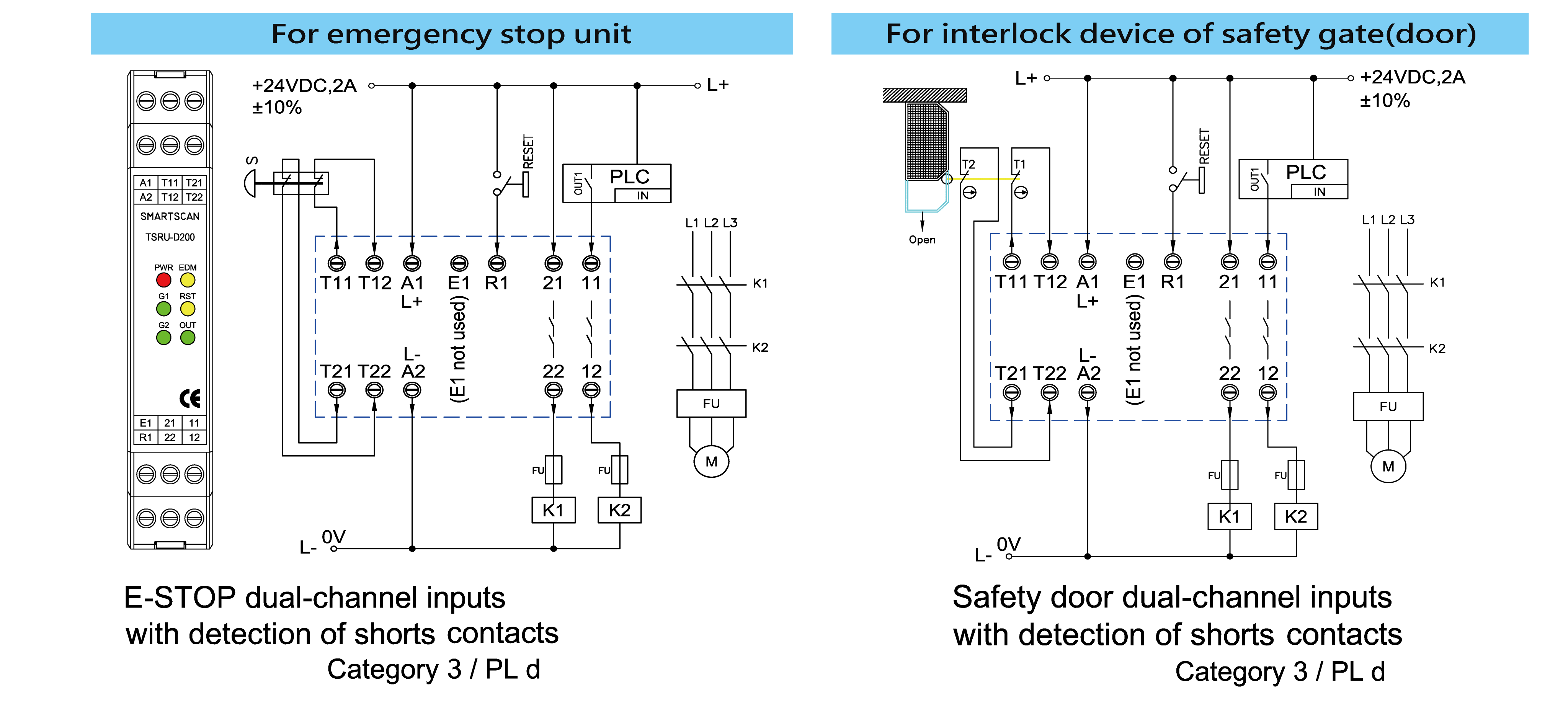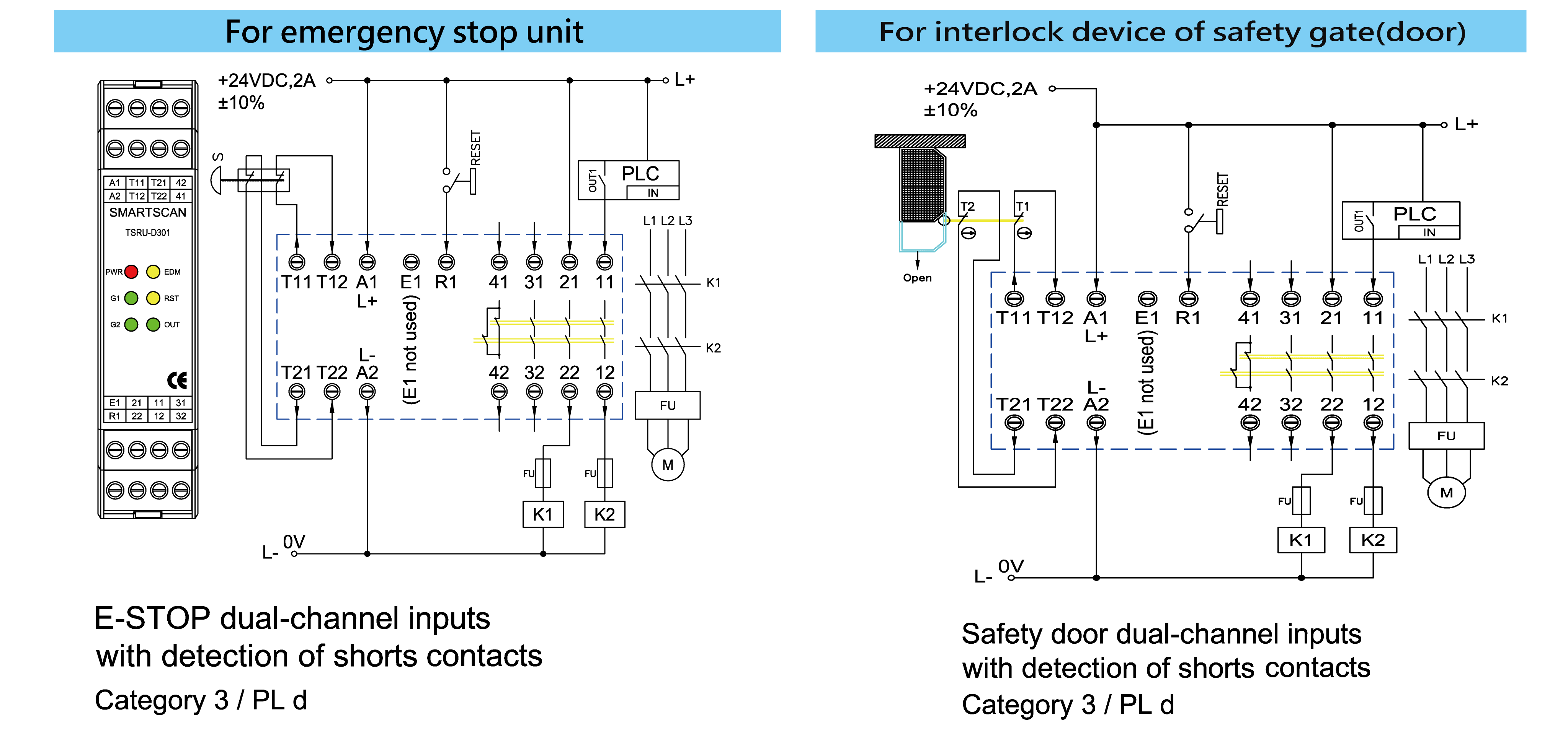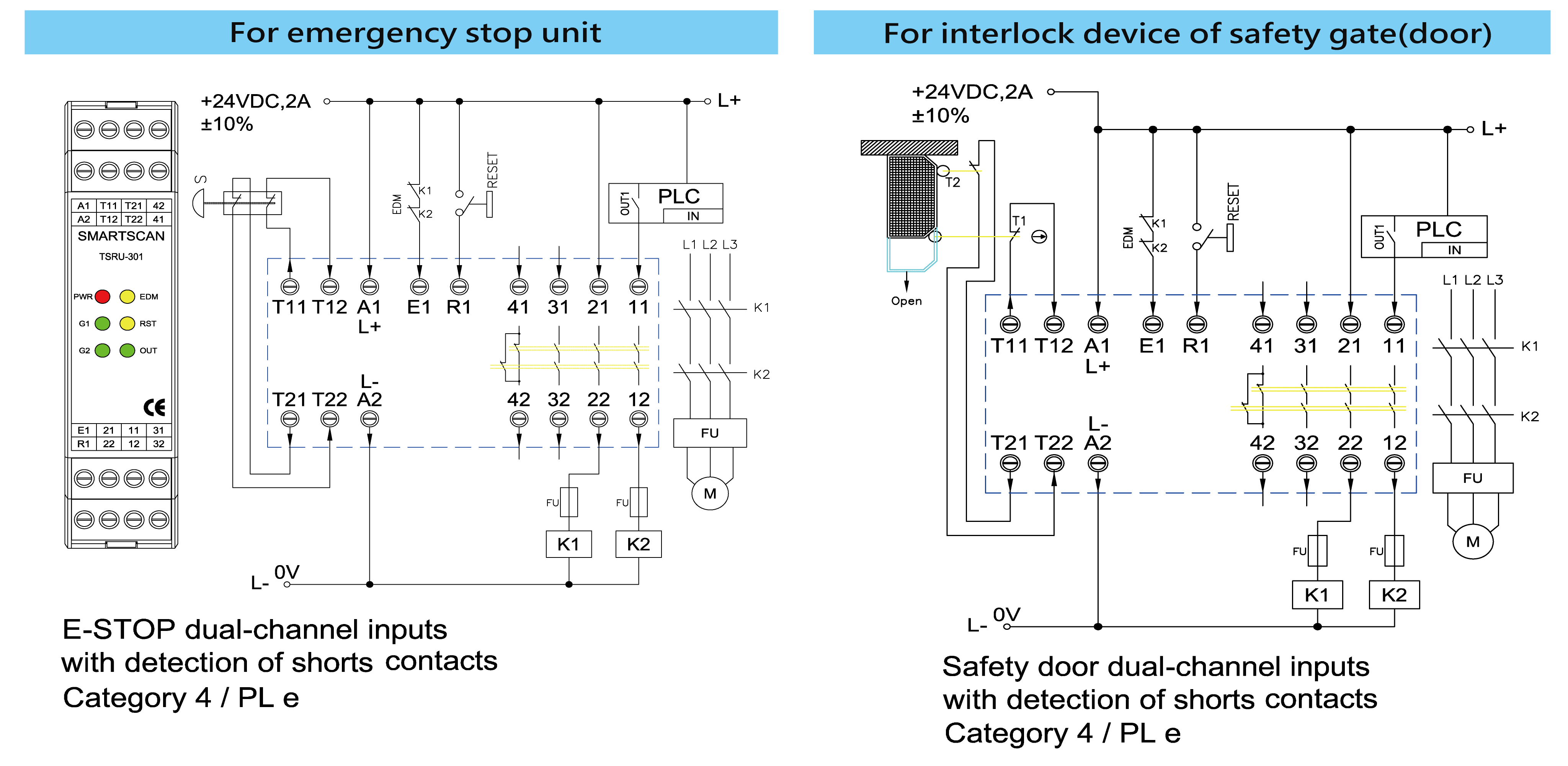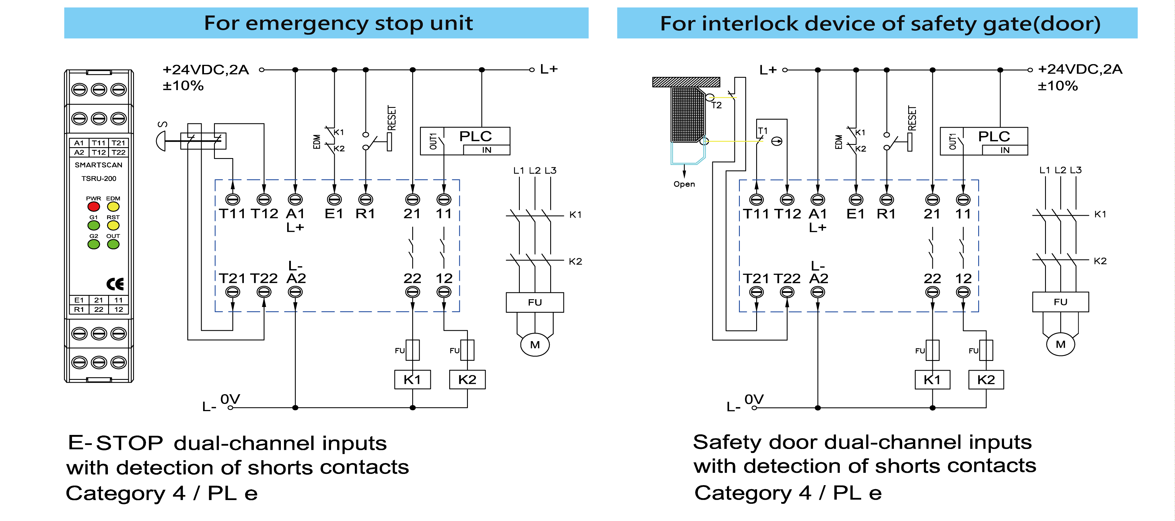 •    Thin shell, DC 24V, dual emergency stop, various output contacts.