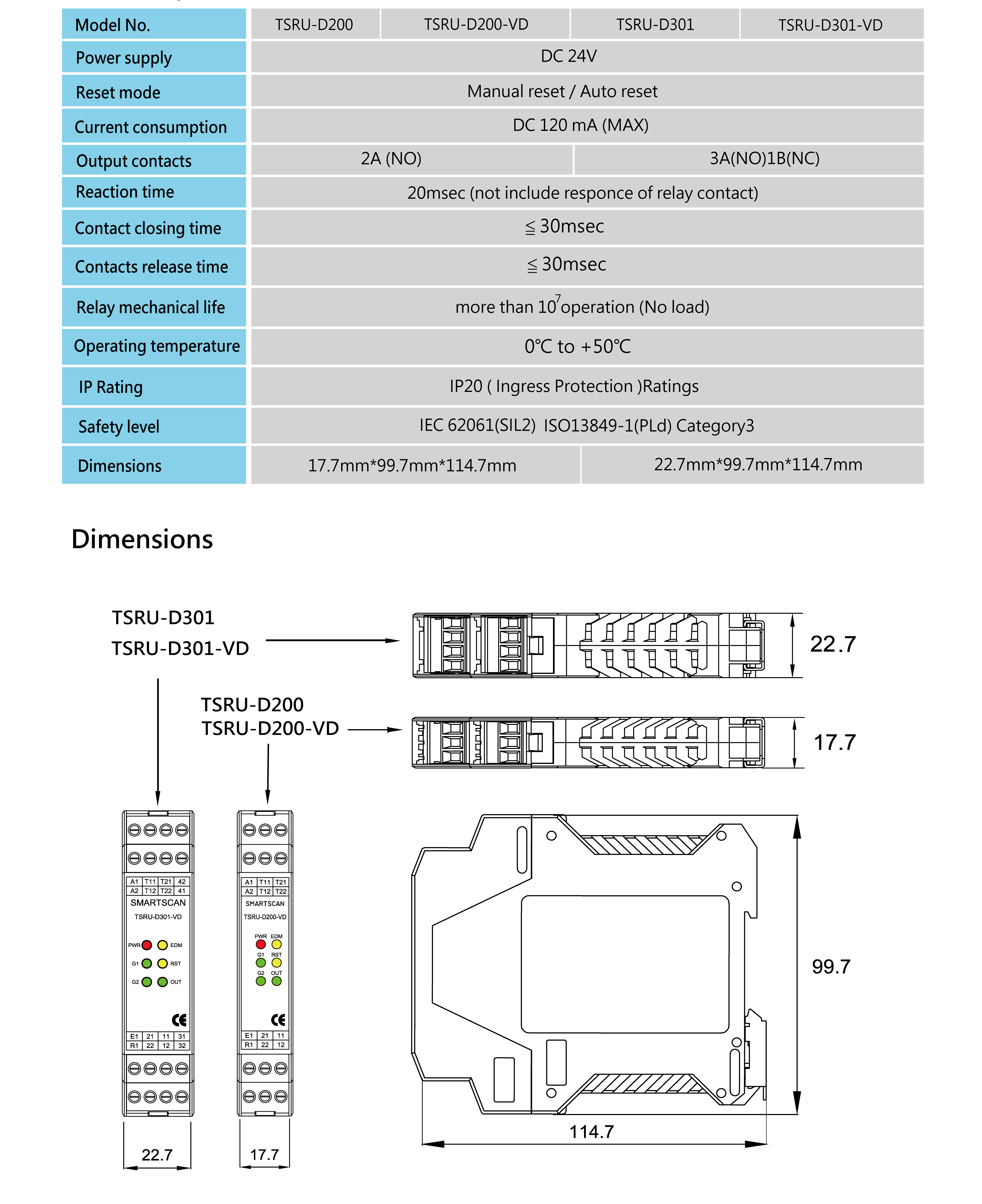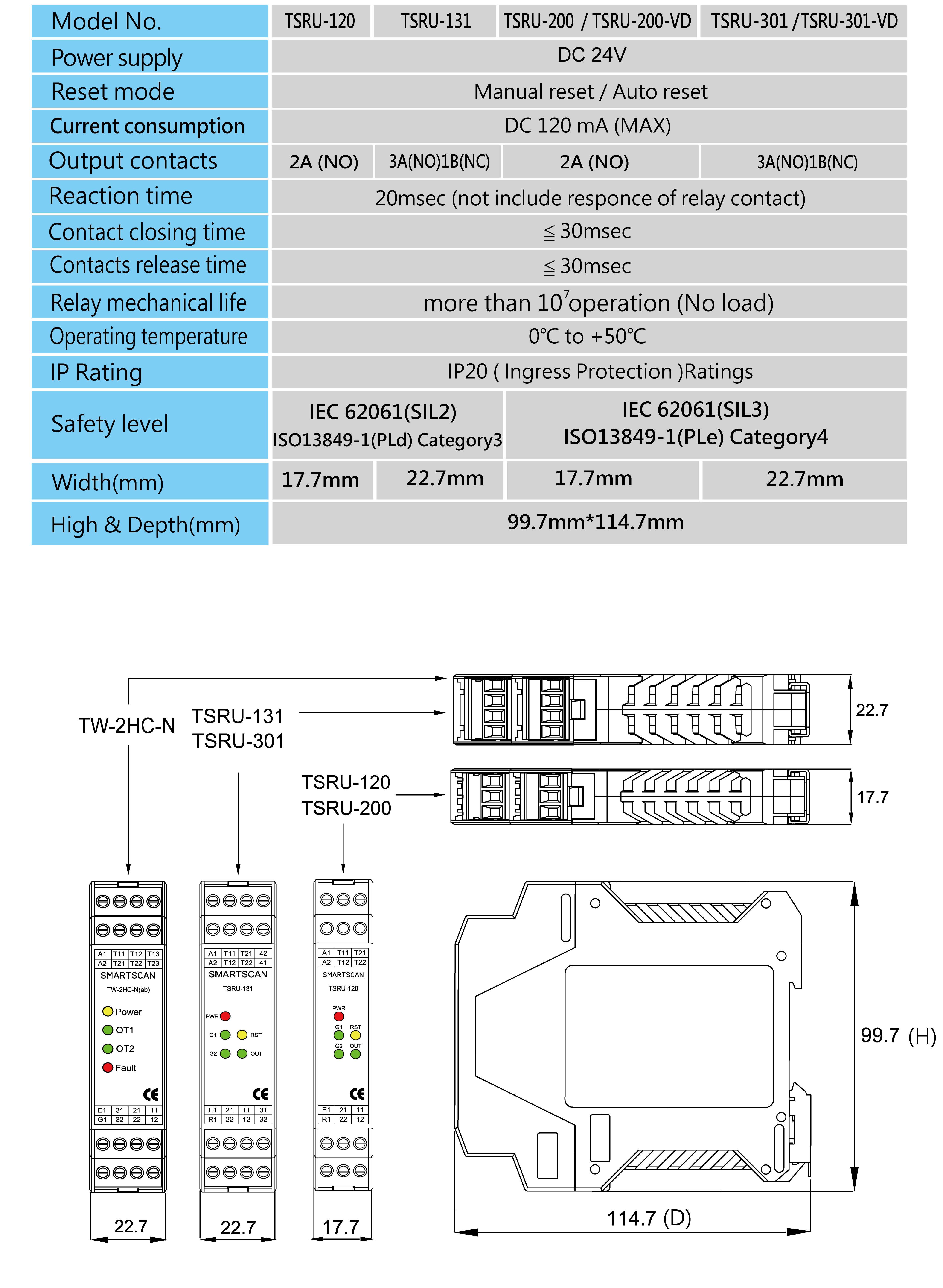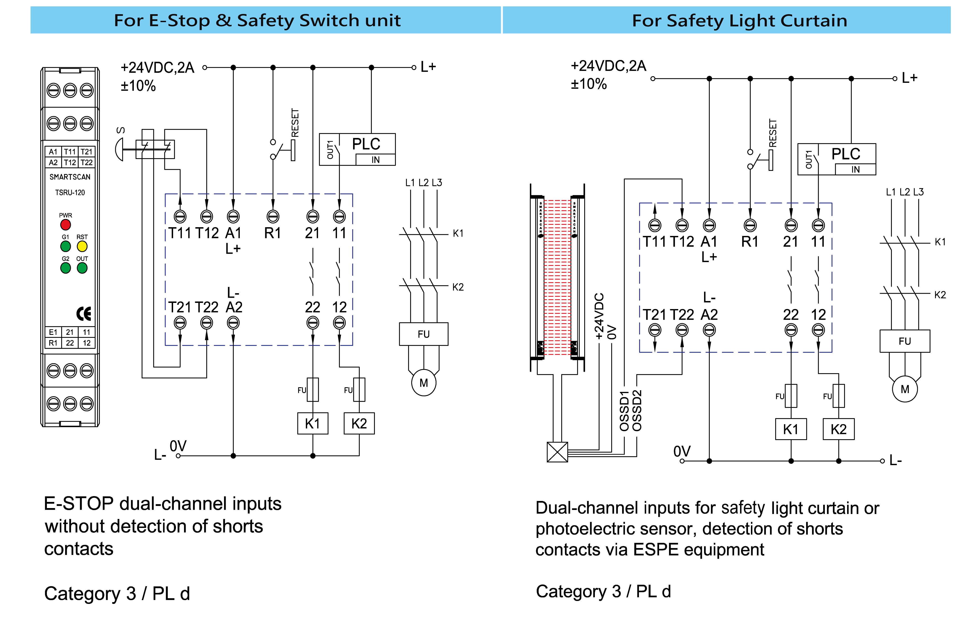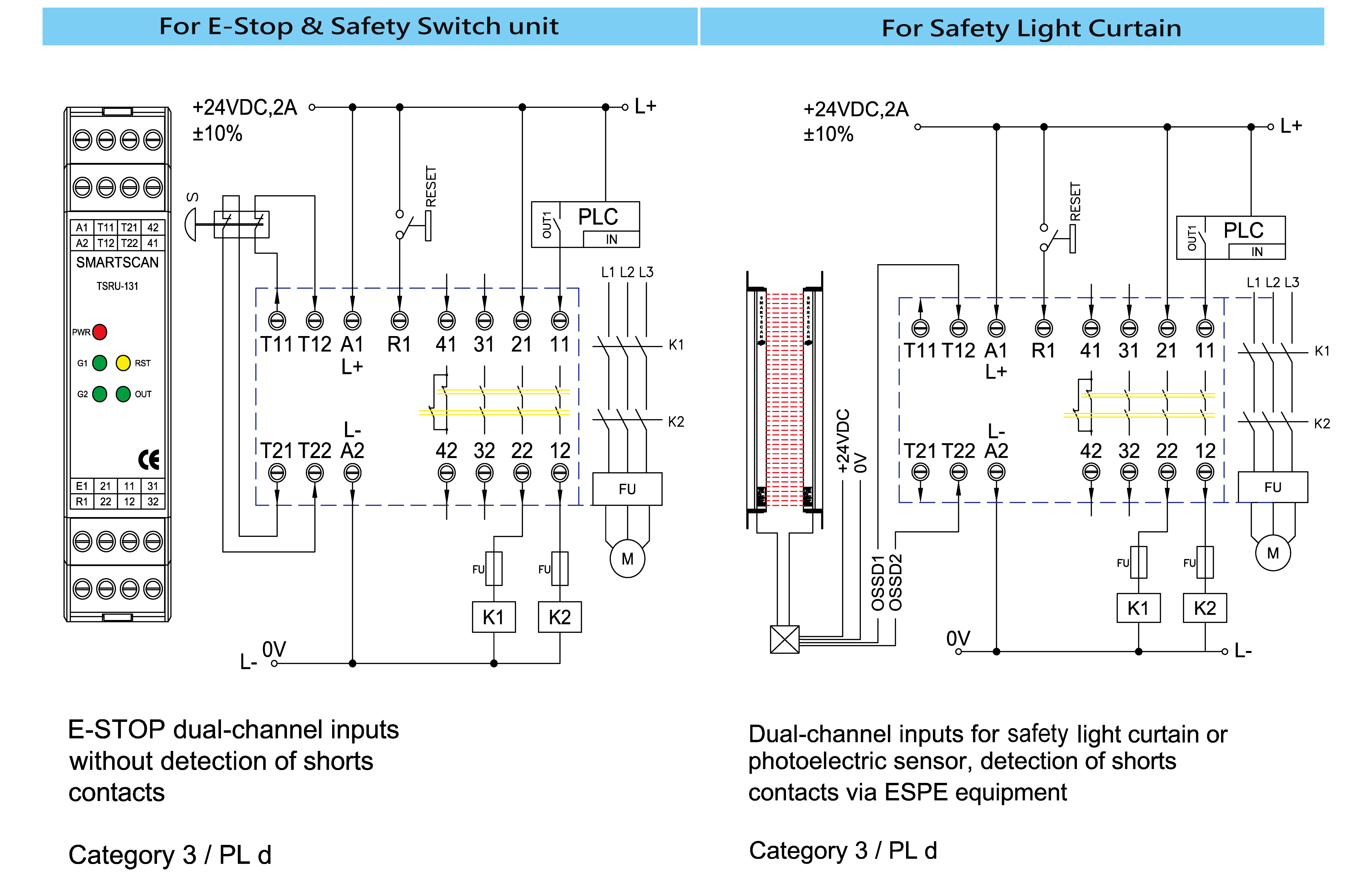•    Thin shell, DC 24V, dual emergency stop, various output contacts.