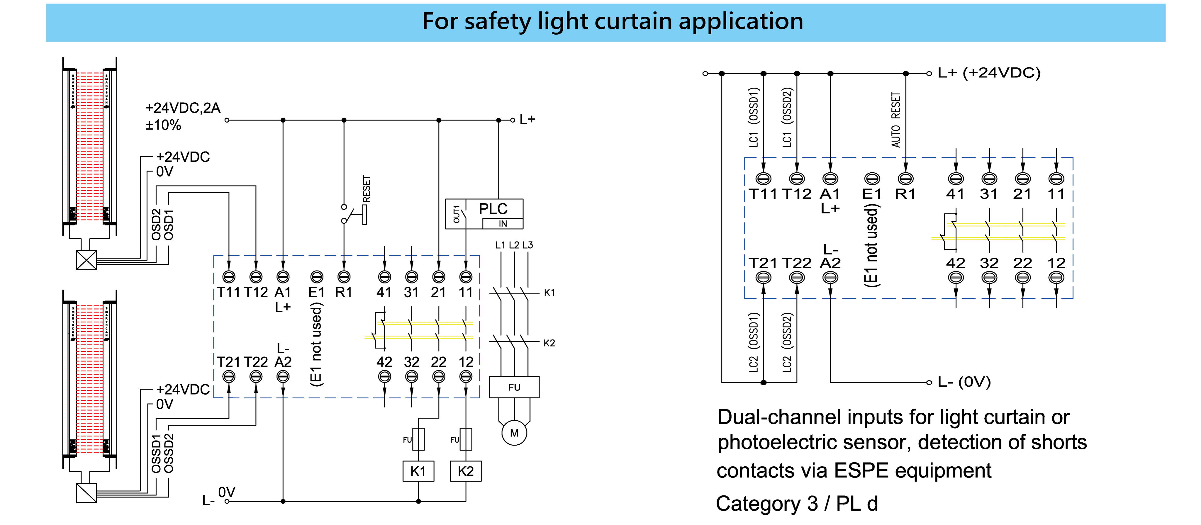 •    IEC 62061(SIL3)、EN ISO 13849-1(PL e) CATEGORY 4 .