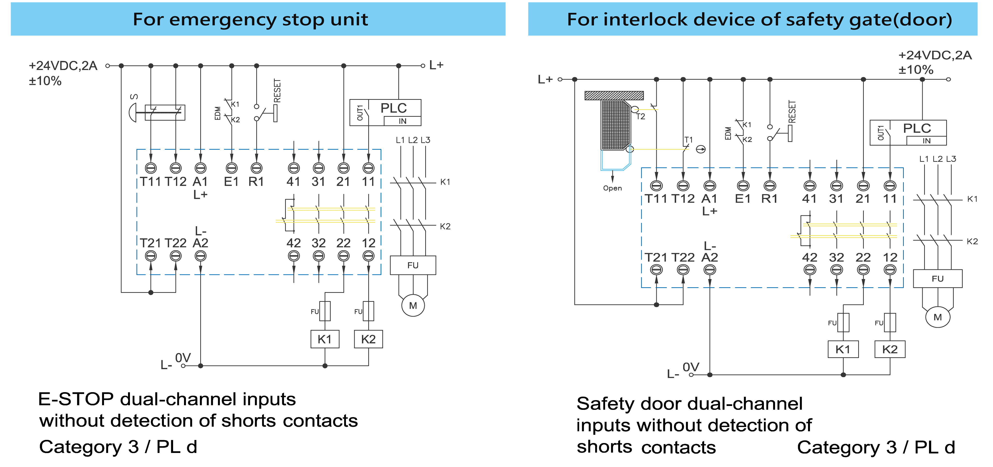 •    Suitable for emergency stop switches, safety bolts, safety light curtains, etc.