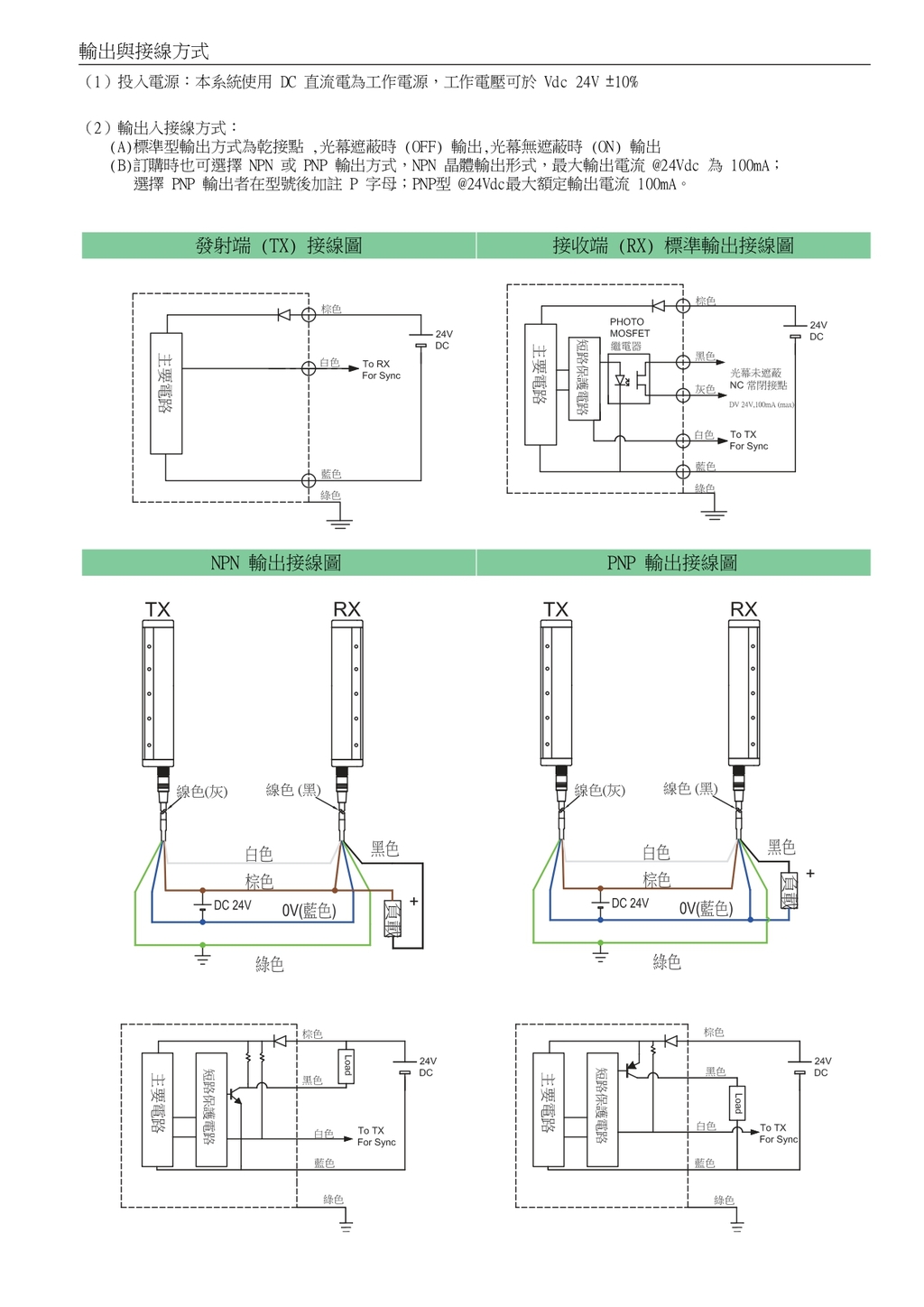 | 輸出模式 | 乾接點輸出 (ON/OFF) / NPN 或 PNP |
