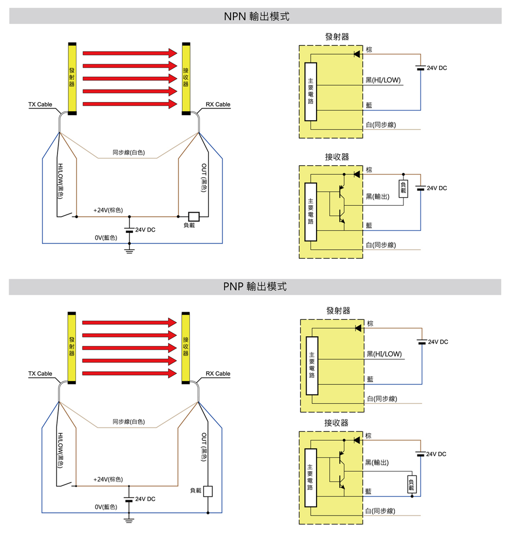 輸出模式 | 一組可設定NPN或PNP(高電位24V 20mA低電位OV 40mA) | |||