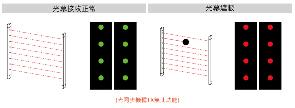消耗功率 | 基本模組40mA;每增加一光軸約增加8mA,最大消耗功率400mA | |||