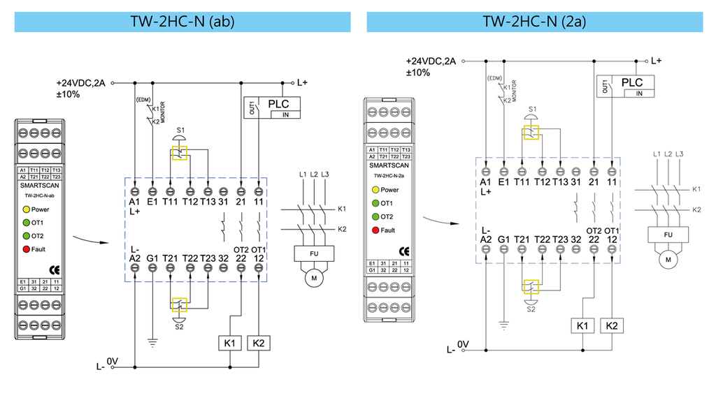 符合國際與歐盟標準ISO 13851 TYPE III C,取得知名歐盟認證單位驗證通過之雙手起動控制裝置模組;符合國內各項安全規範,除可有效降低工作意外發生,也能透過模組改善以往雙手起動控制裝置內部配線複雜性。