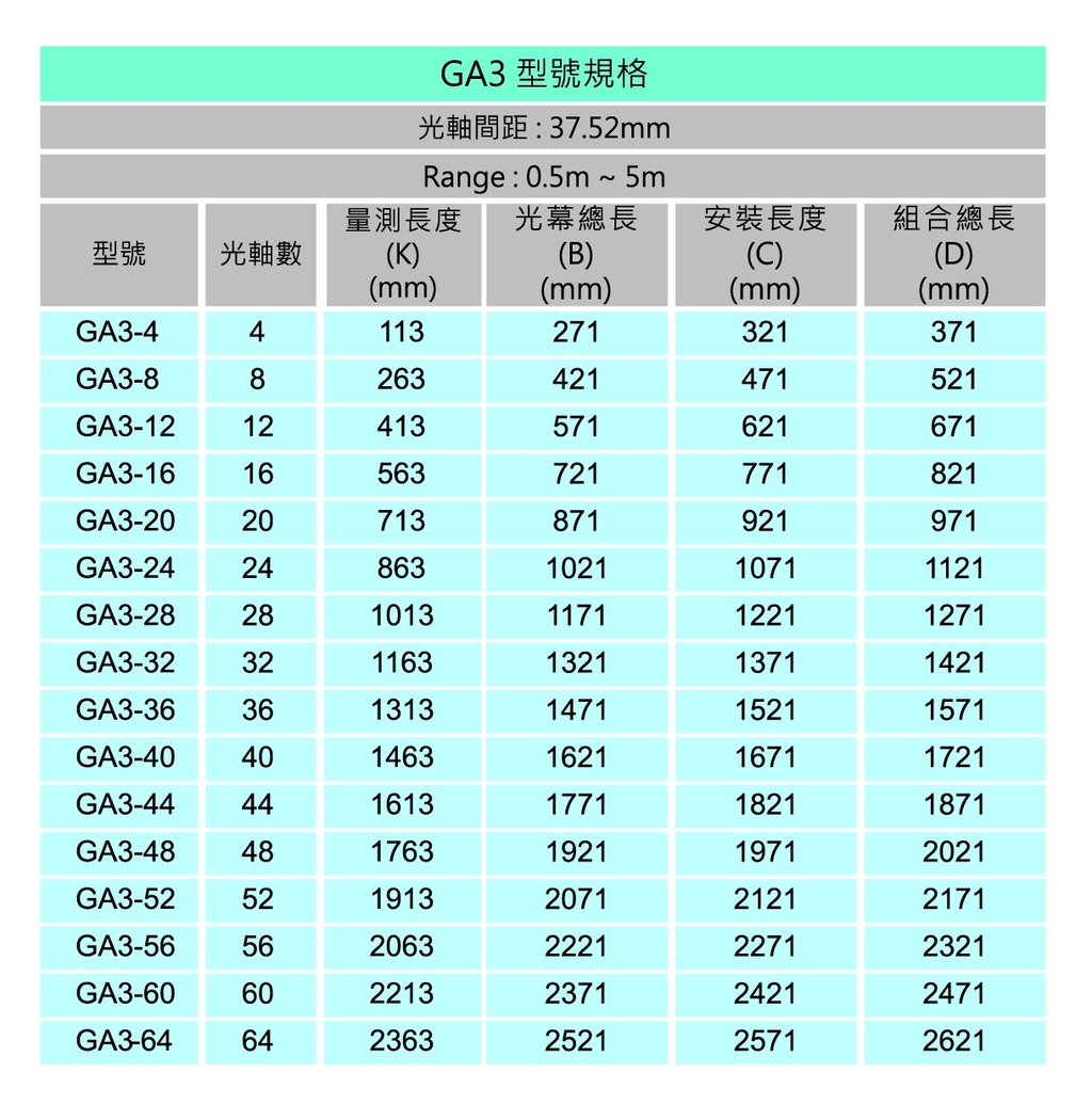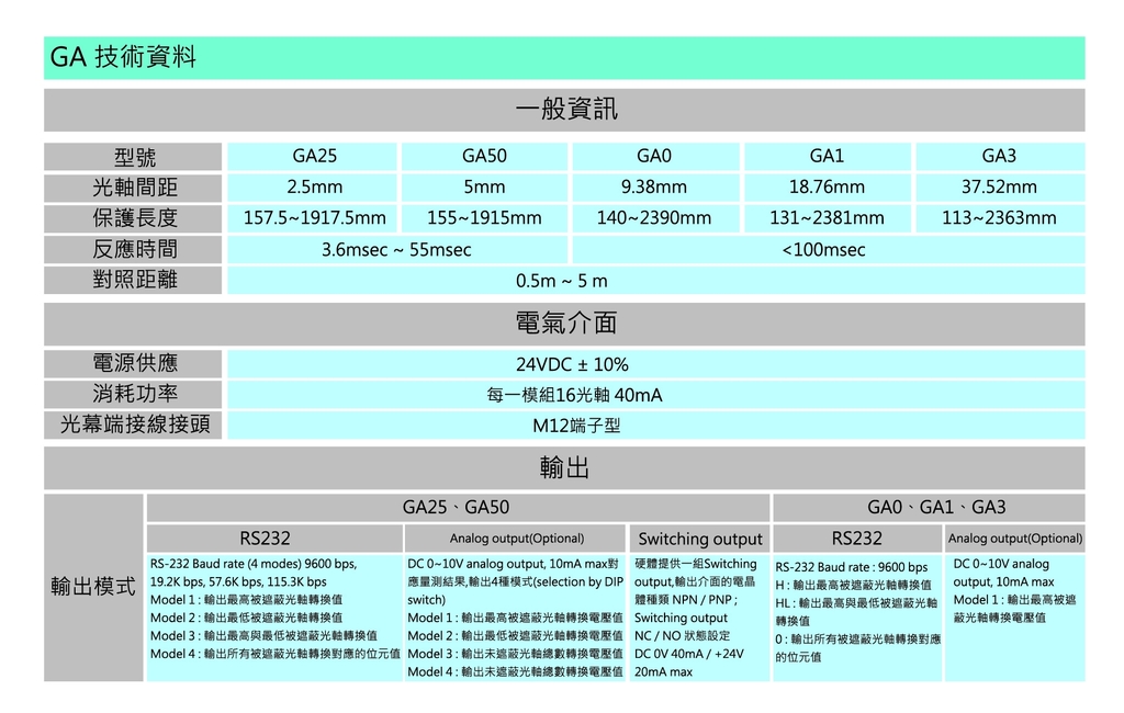 GA系列 量測型光幕