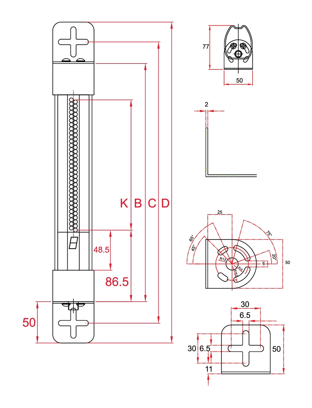 具有各式間距2.5、5、9.38、18.76、37.52mm